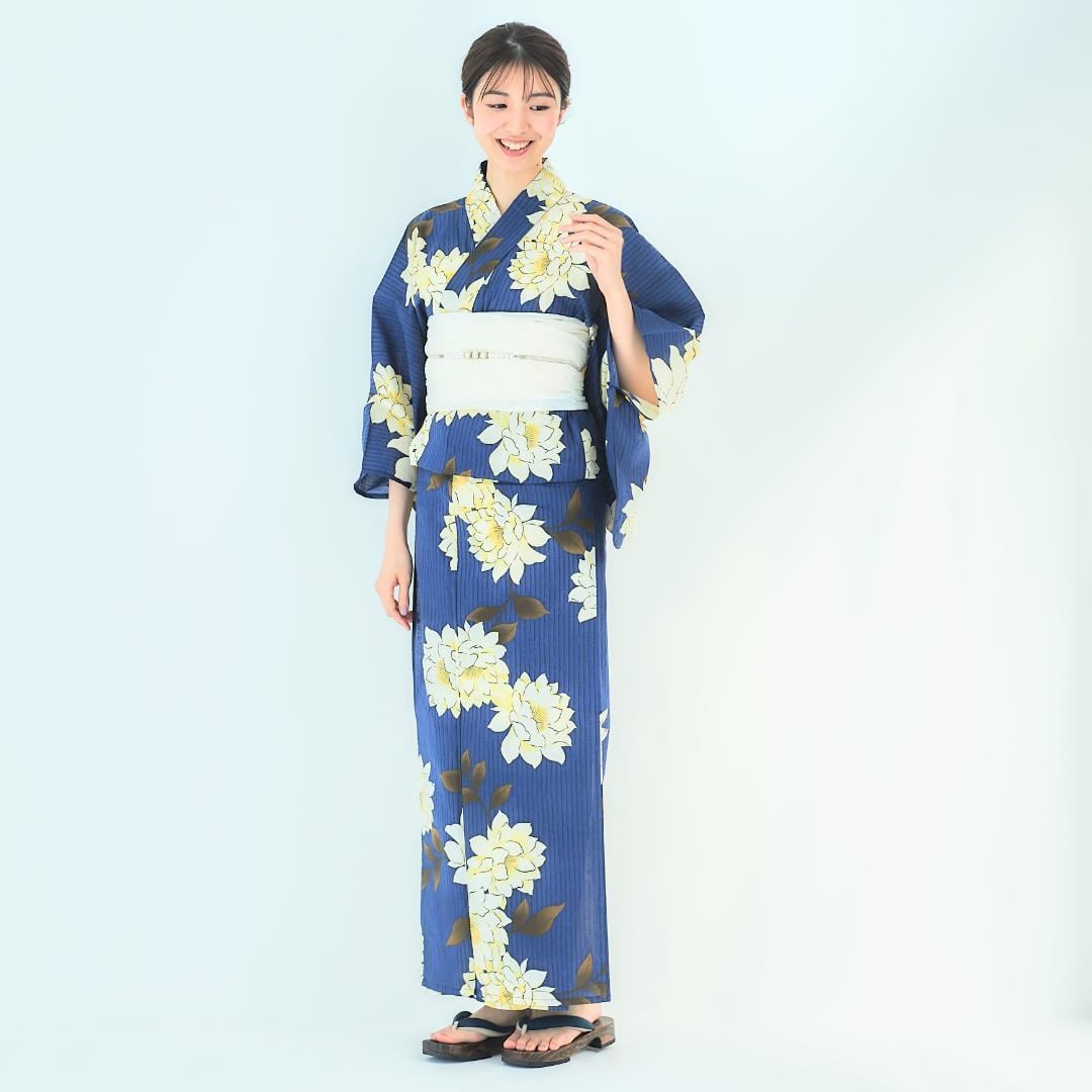 【浴衣単品】浴衣 レディース 紺 青 ネイビー wy16