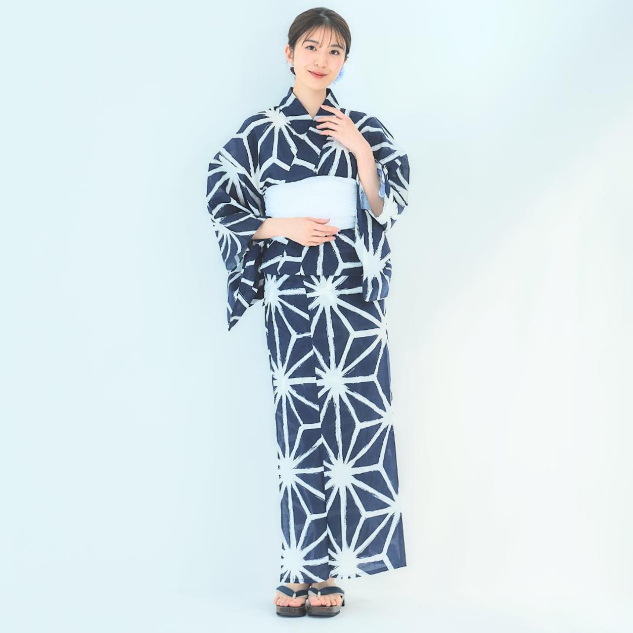 【浴衣単品】浴衣 レディース 紺 ネイビー 麻の葉 wy18
