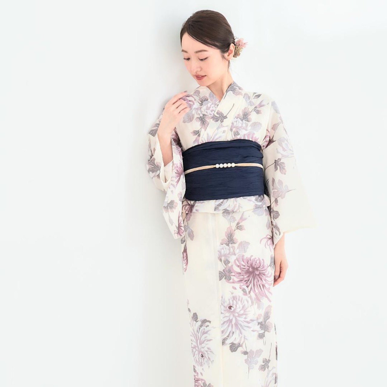 【浴衣単品】浴衣 レディース 白 生成り 菊 wy42
