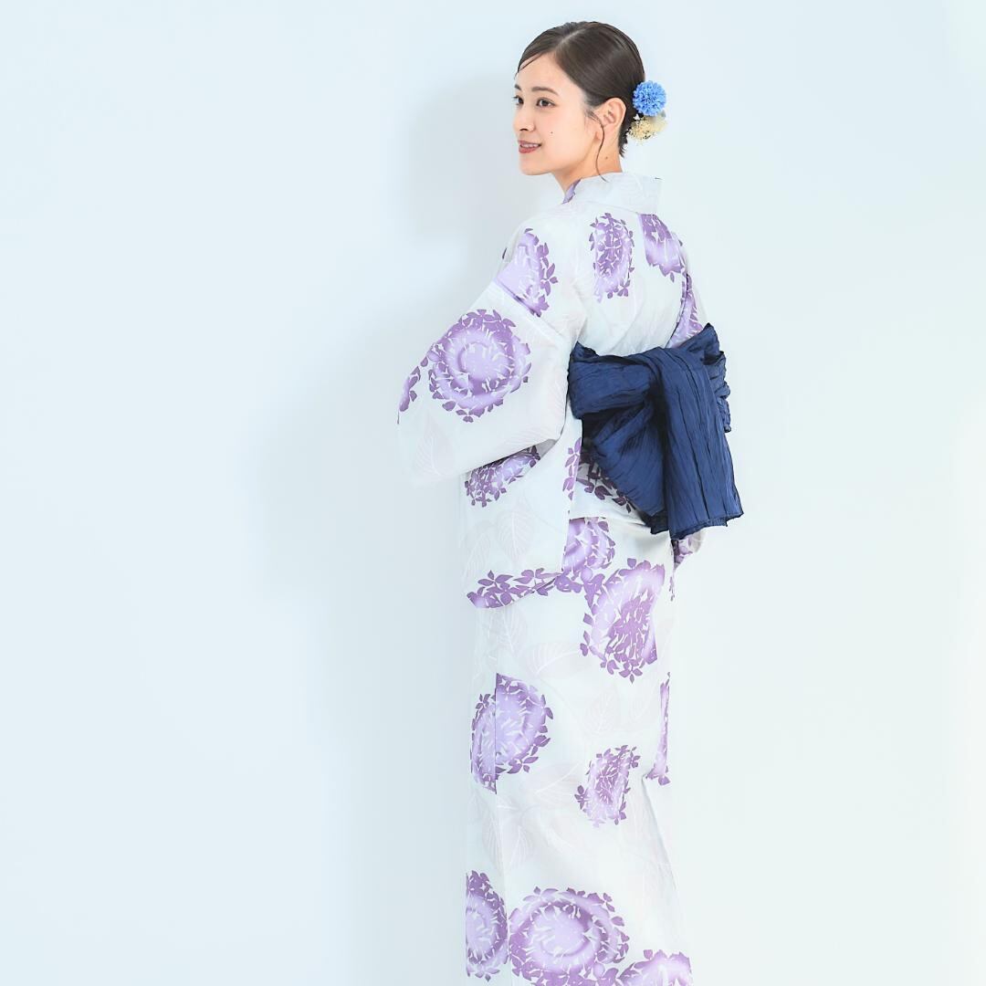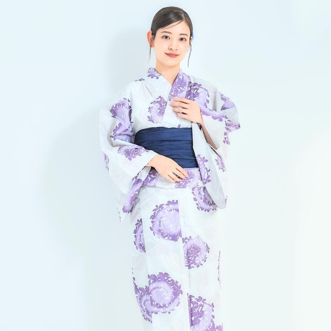 【浴衣単品】浴衣 レディース 白 紫 紫陽花 あじさい km3