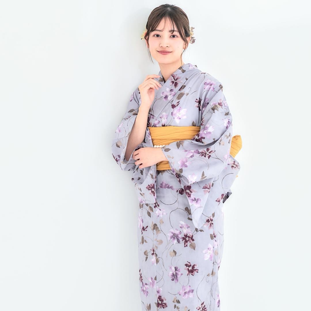 レディース 浴衣 セパレート 二部式 かんたん着付け グレー 紫 No.5