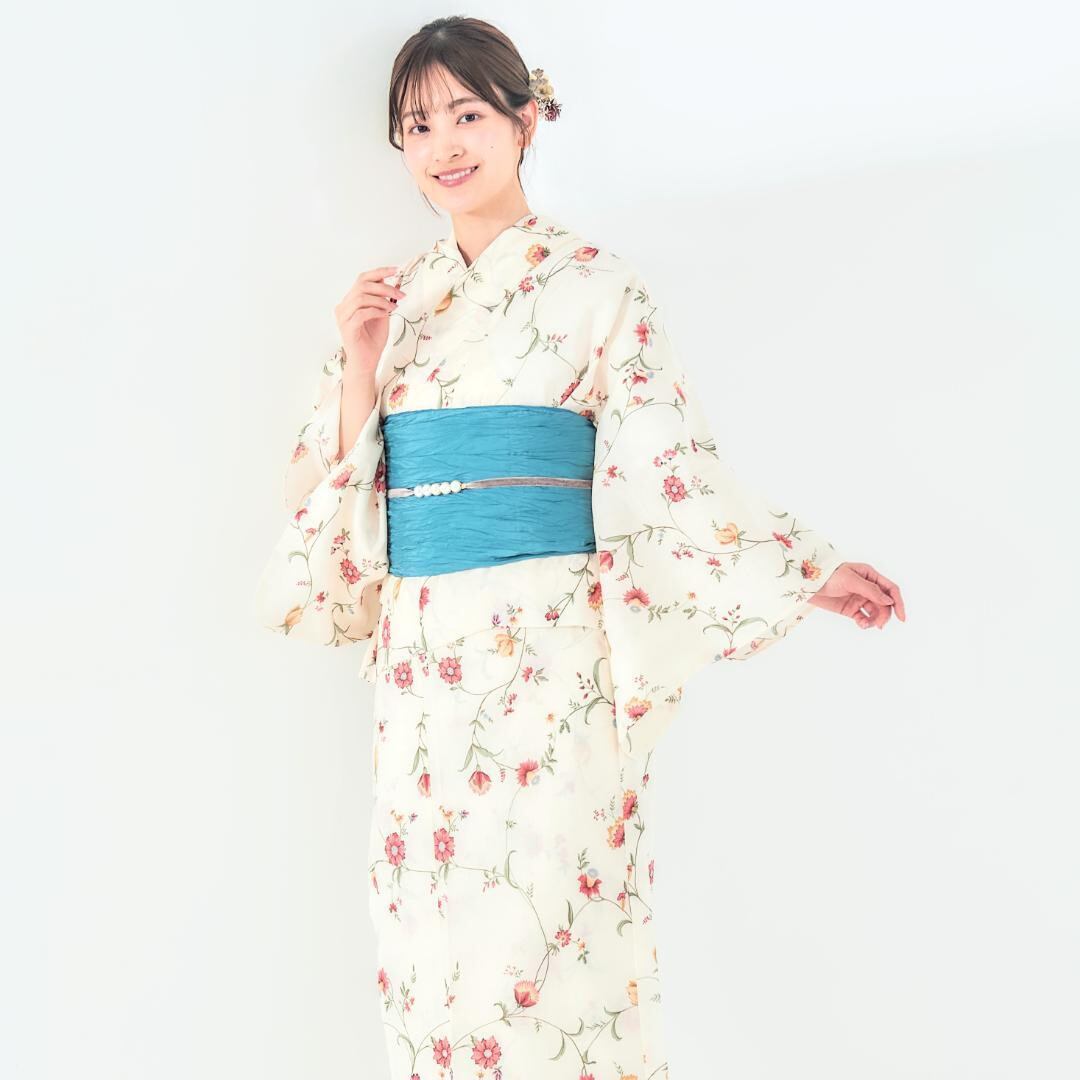 レディース 浴衣 セパレート 二部式 かんたん着付け 白 生成り 小花 No.7