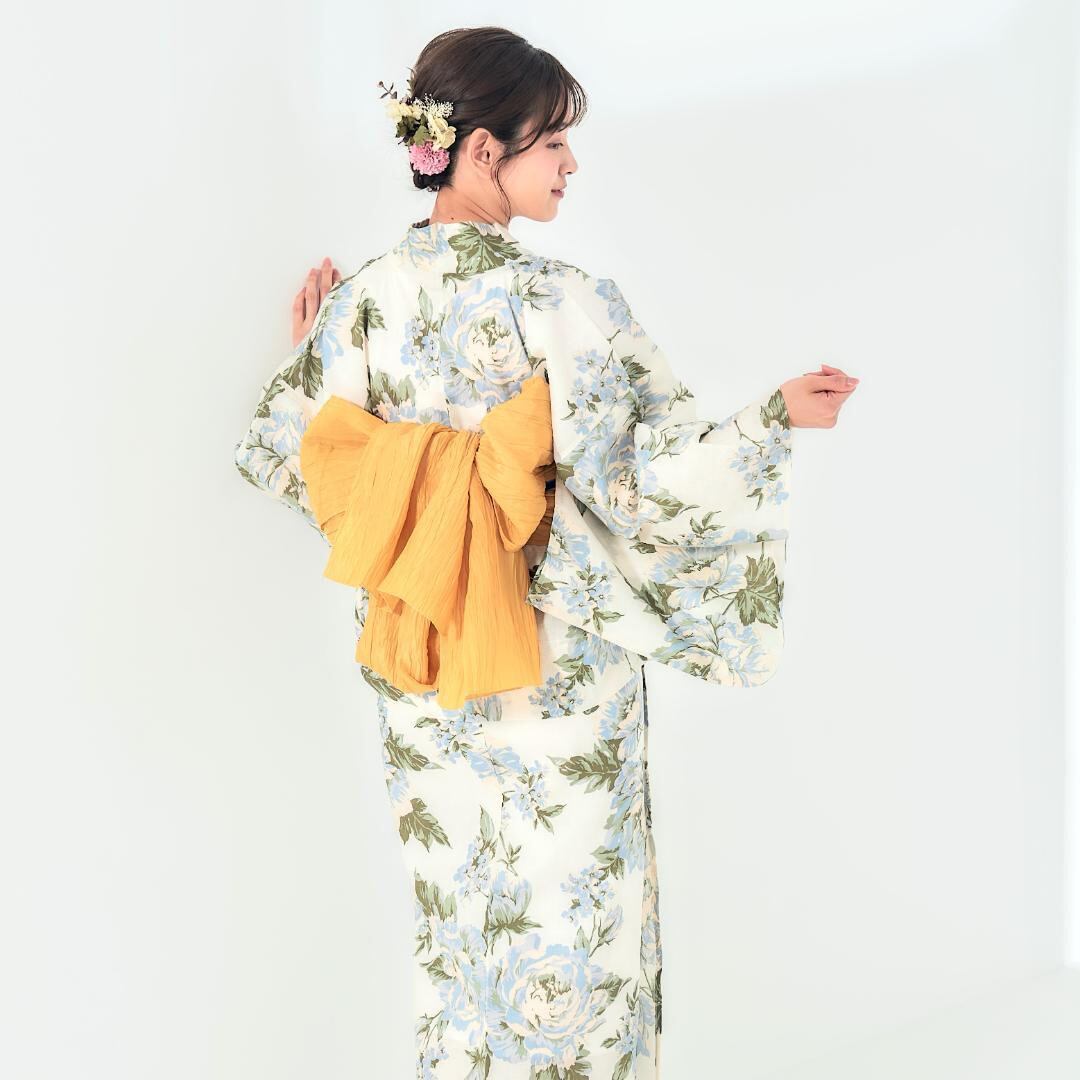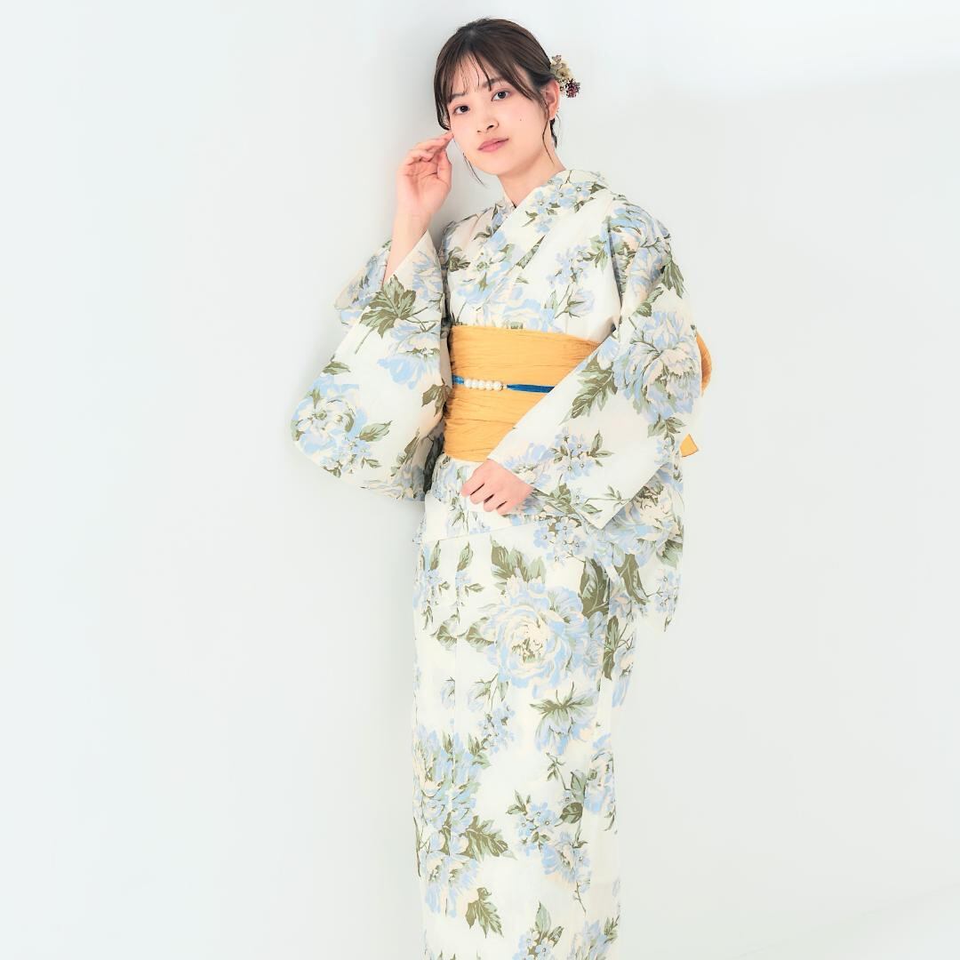 レディース 浴衣 セパレート 二部式 かんたん着付け 生成り 牡丹 No.11