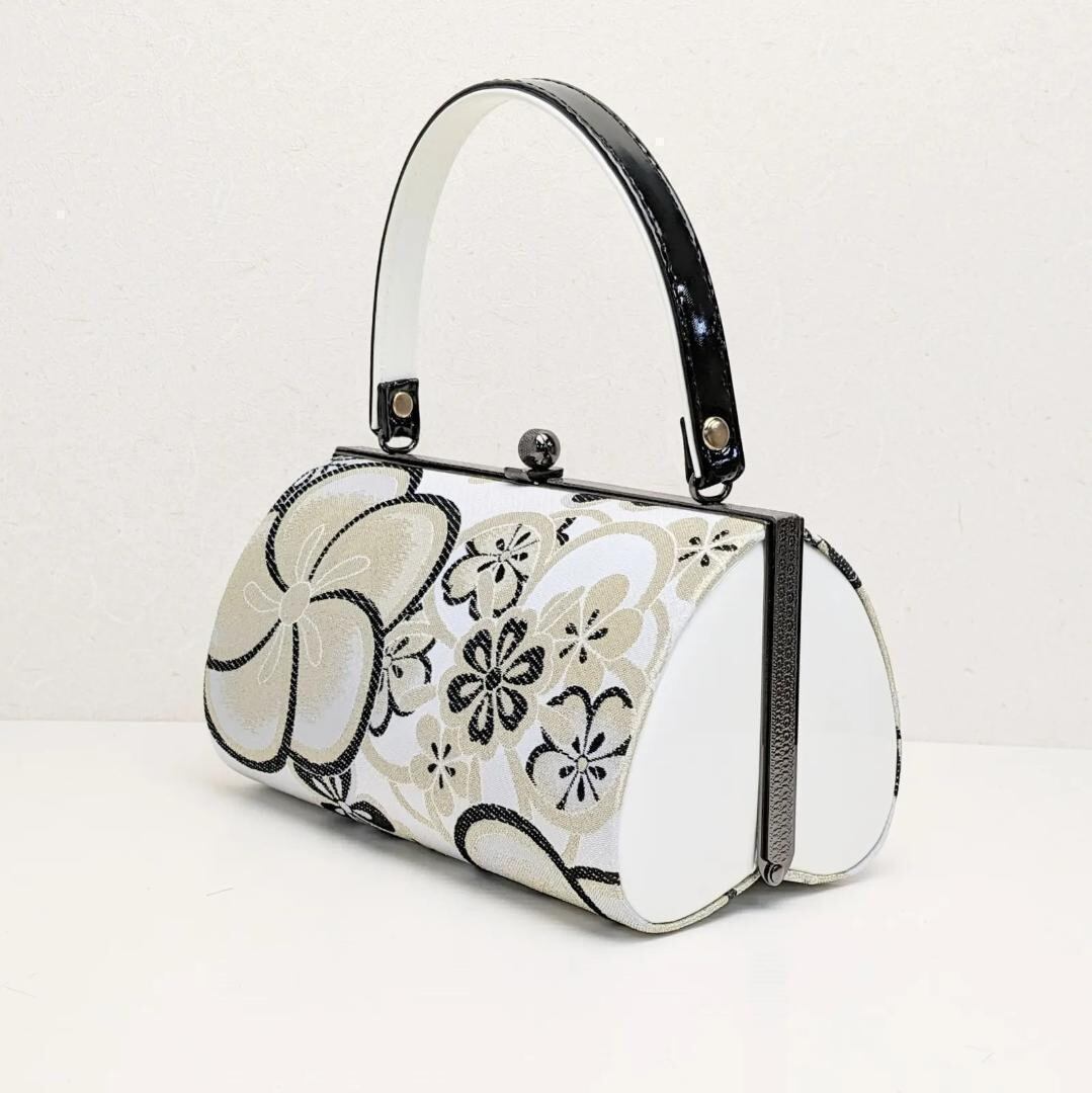 和装 草履バッグセット 帯地 梅 桜 白×黒 3枚芯 フリーサイズ k15-7
