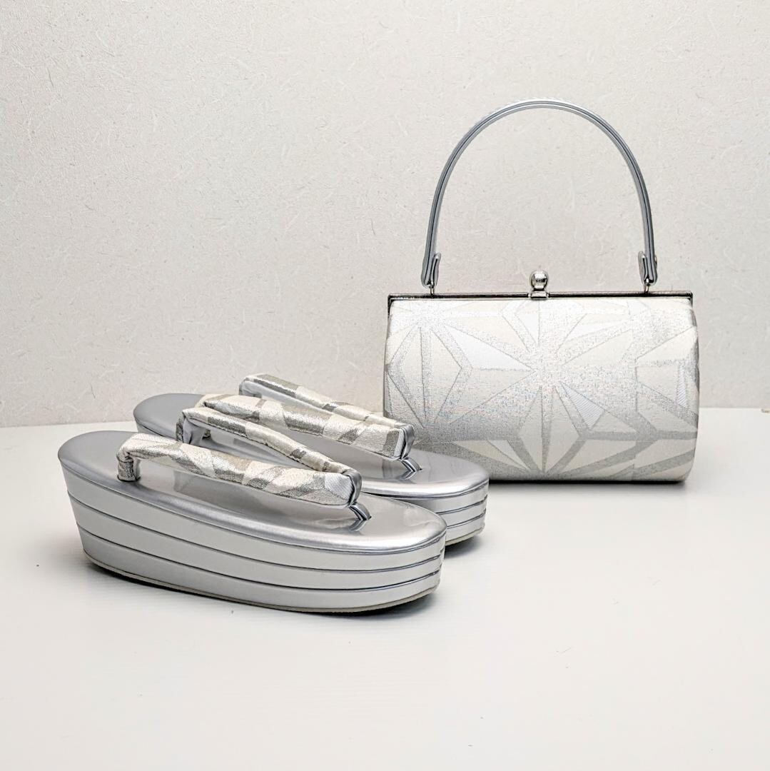 和装 草履バッグセット 帯地 銀 シルバー 3枚芯 フリーサイズ k15-9