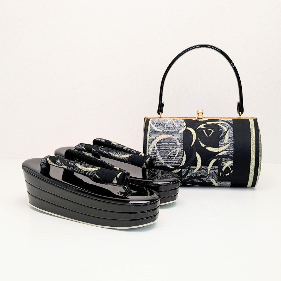 和装 草履バッグセット 帯地 モダン 黒×金 3枚芯 フリーサイズ k16-1