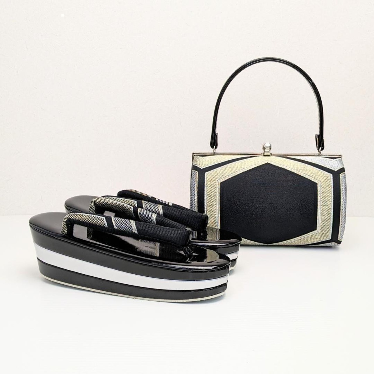 和装 草履バッグセット 帯地 黒×銀 3枚芯 フリーサイズ k16-6
