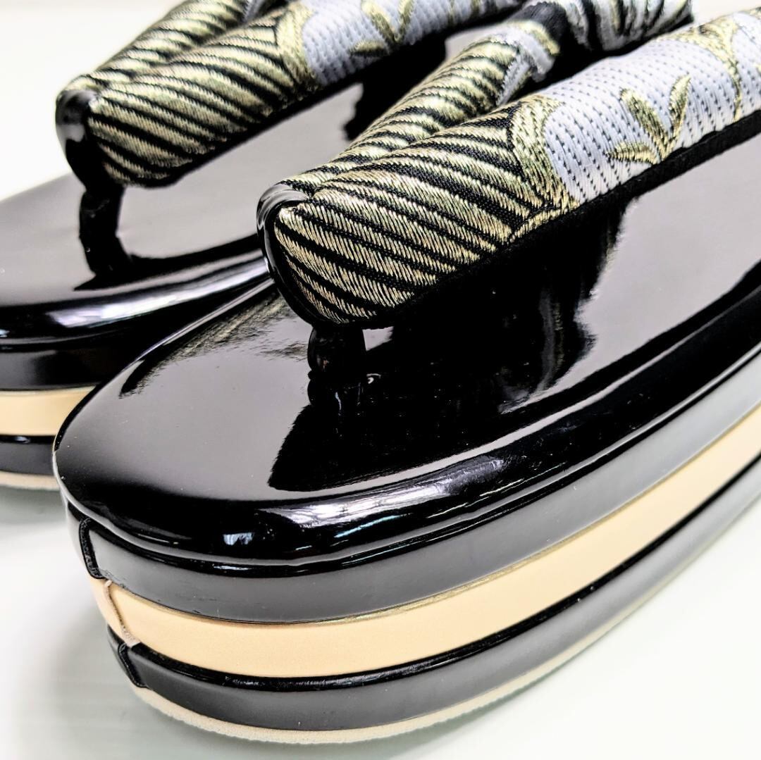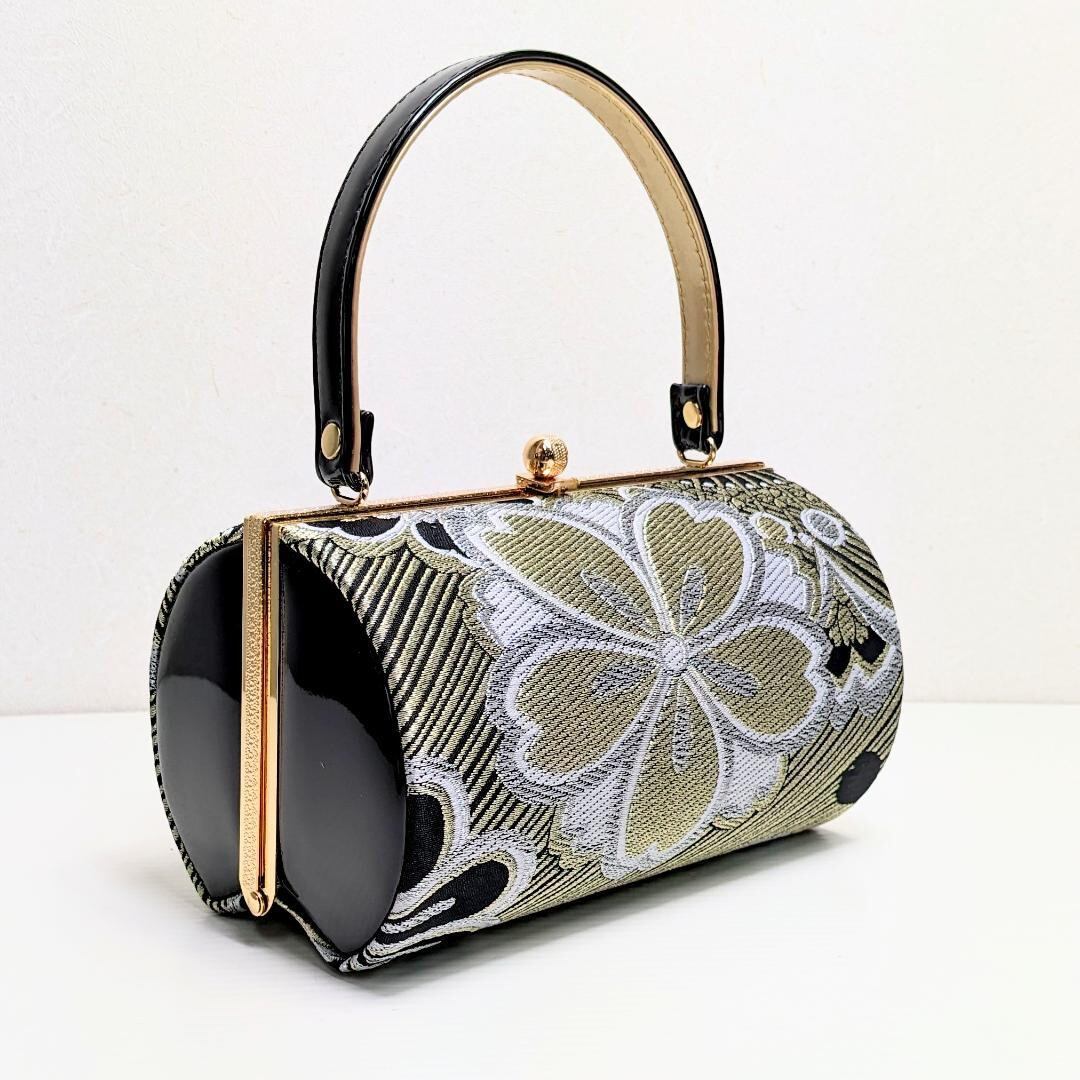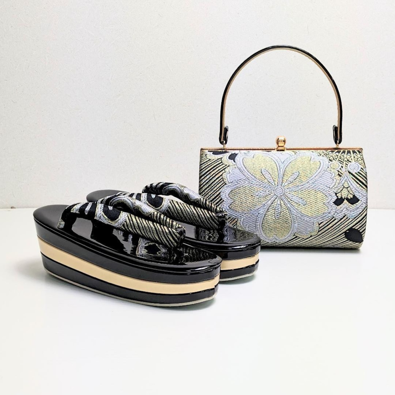和装 草履バッグセット 帯地 桜 黒×金 3枚芯 フリーサイズ k16-15