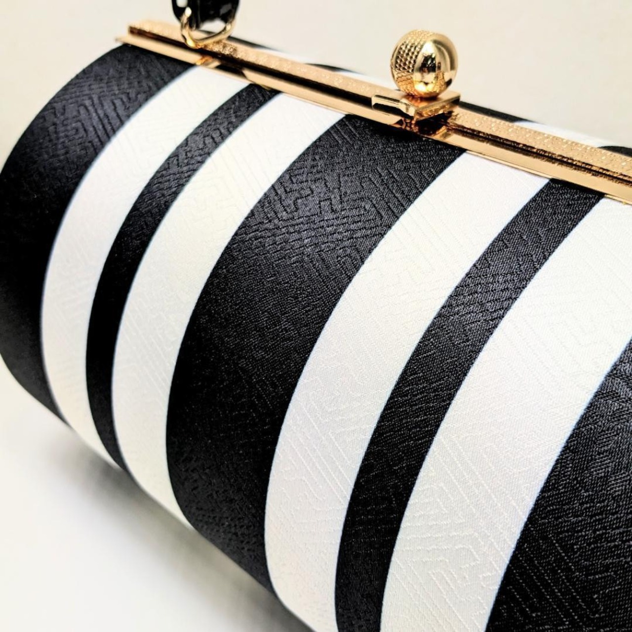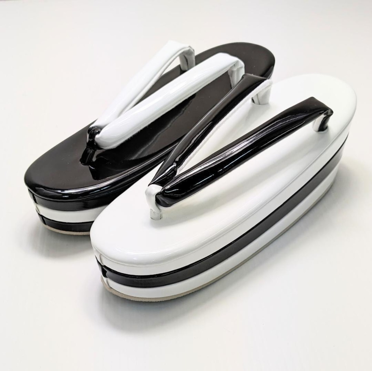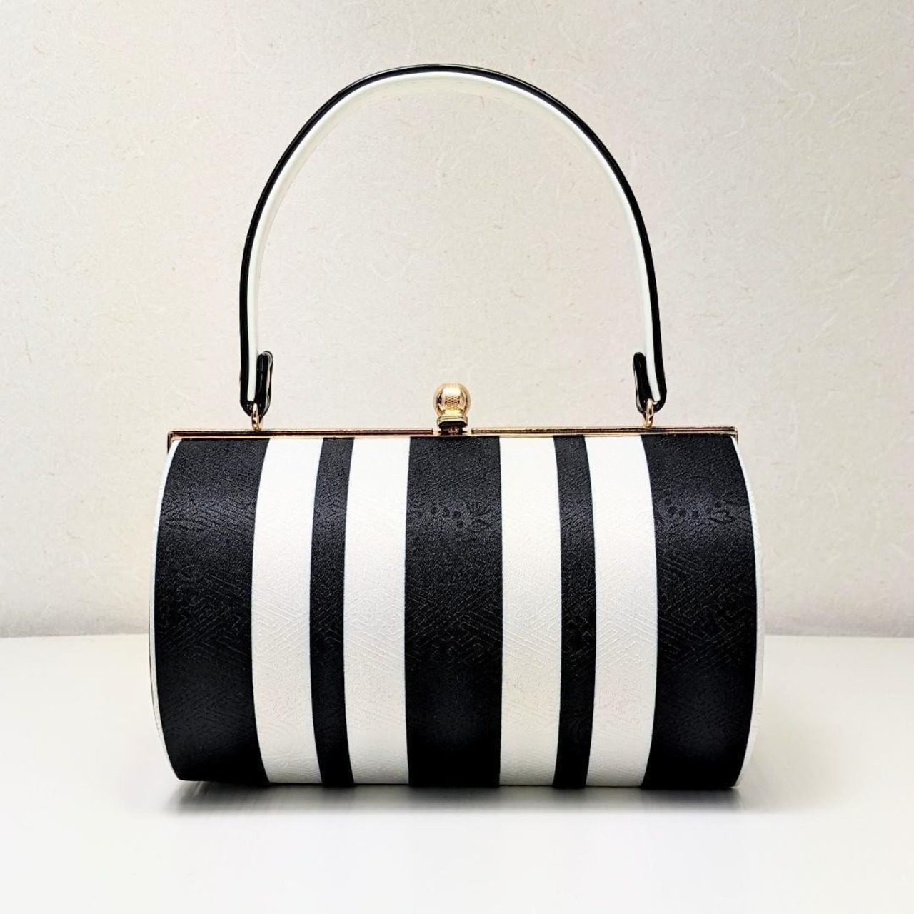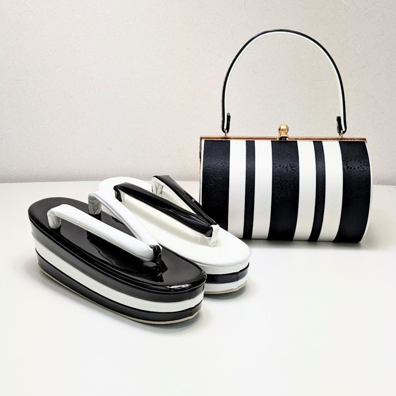 和装 草履バッグセット ストライプ 白×黒 3枚芯 フリーサイズ k16-18