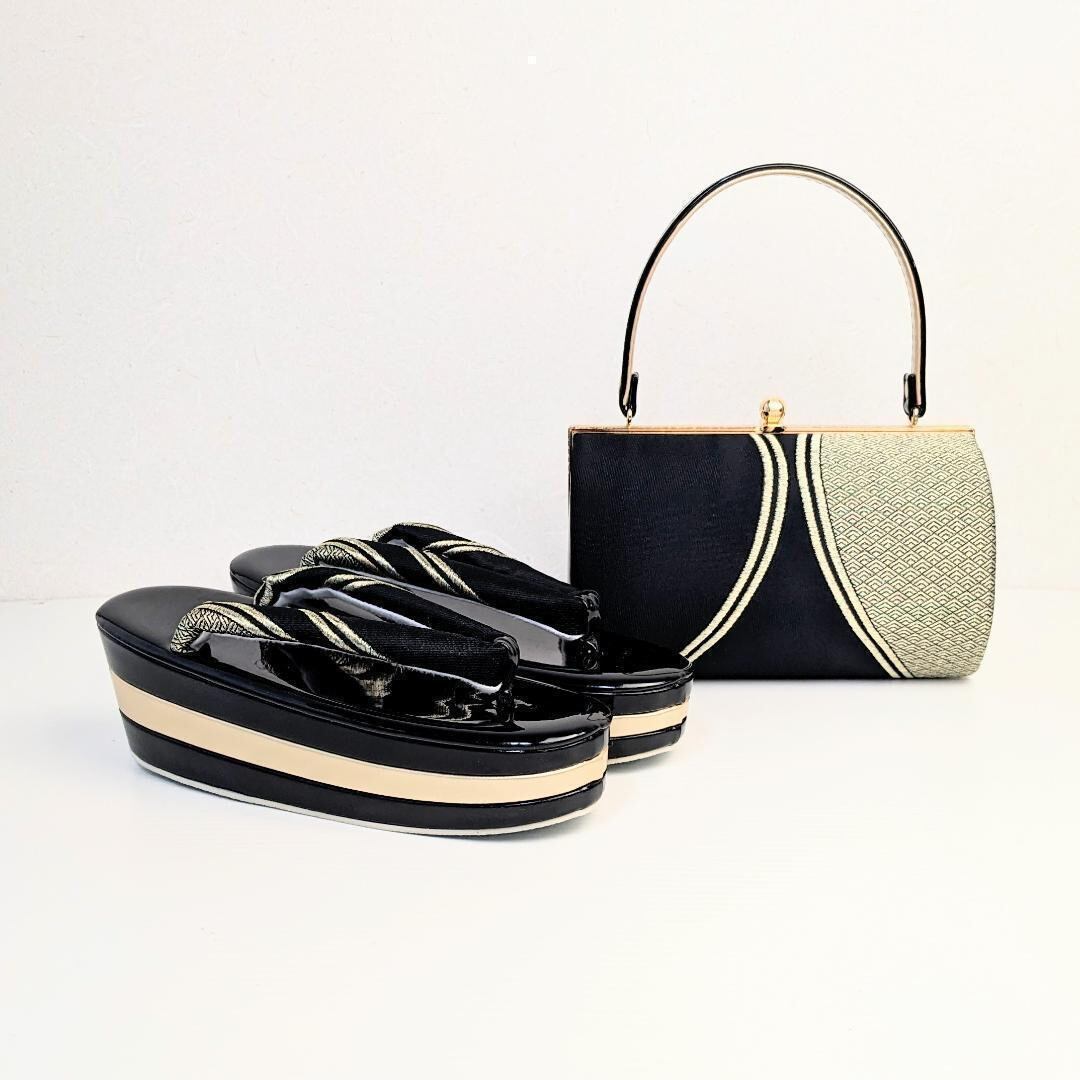和装 草履バッグセット 帯地 黒×金 3枚芯 フリーサイズ k19-5