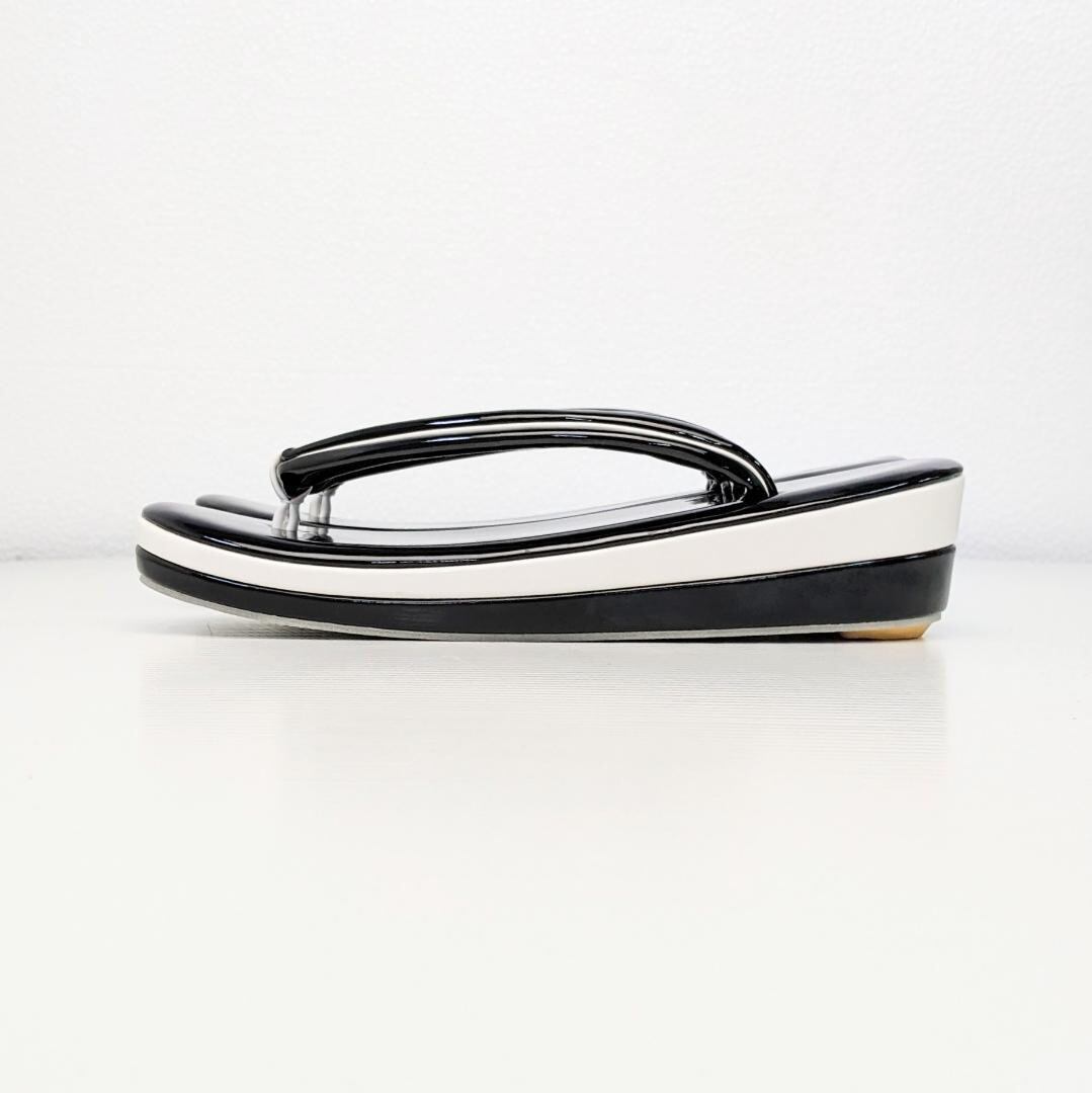 和装 草履 エナメル 黒×白 ブラック フリーサイズ (M〜Lサイズ) k23