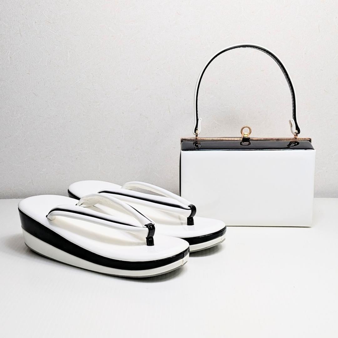 和装 草履 バッグ セット エナメル 幅広 スクエア ホワイト×ブラック k24