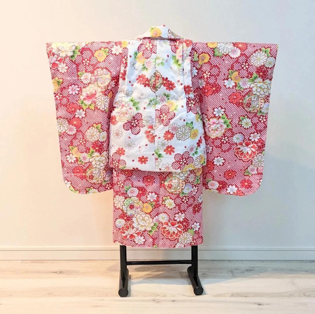 女の子 七五三 3歳 被布 着物セット 赤 白 絞り柄 s3