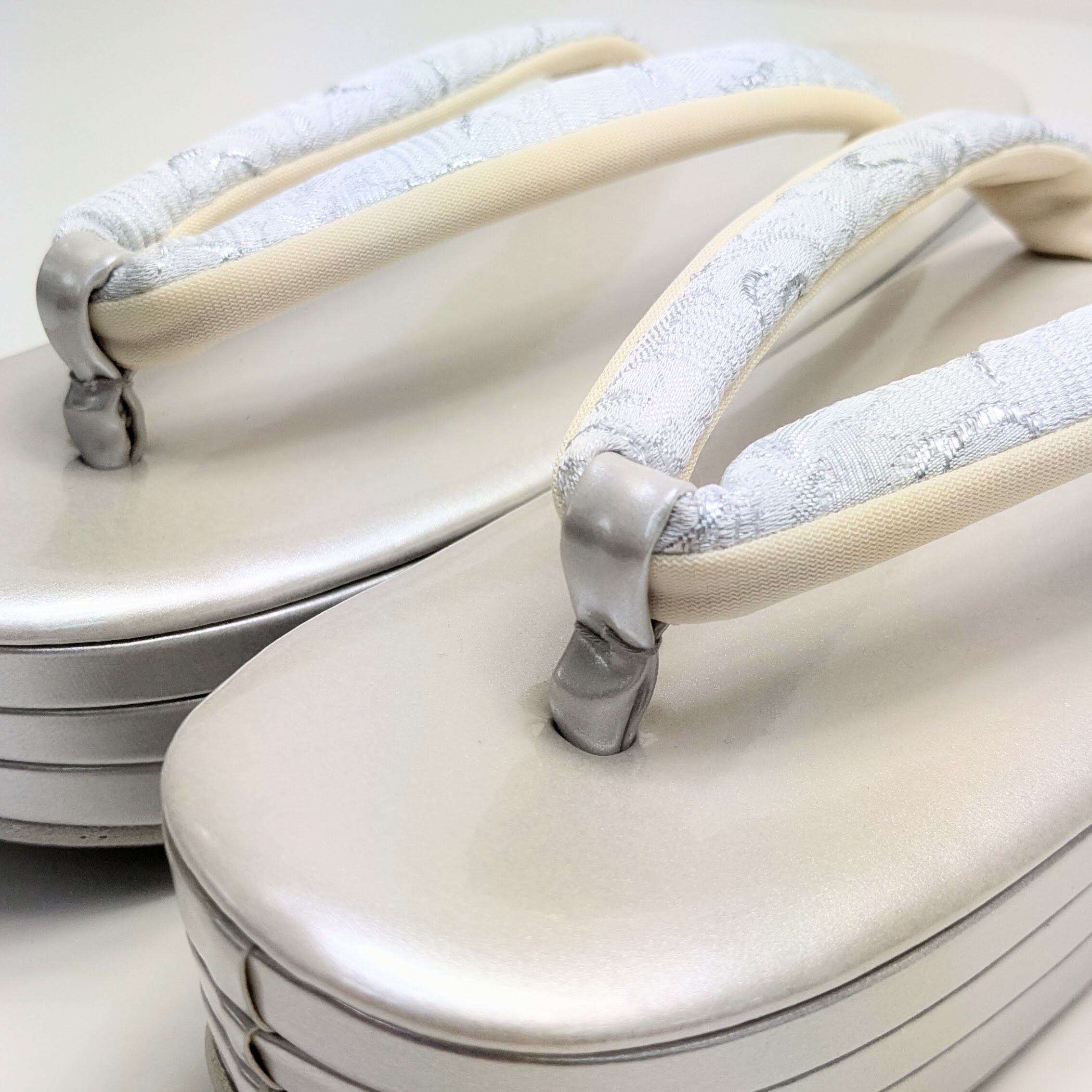 草履バッグセット 帯地 ふくれ織り 白 銀 シルバー フリーサイズ u104