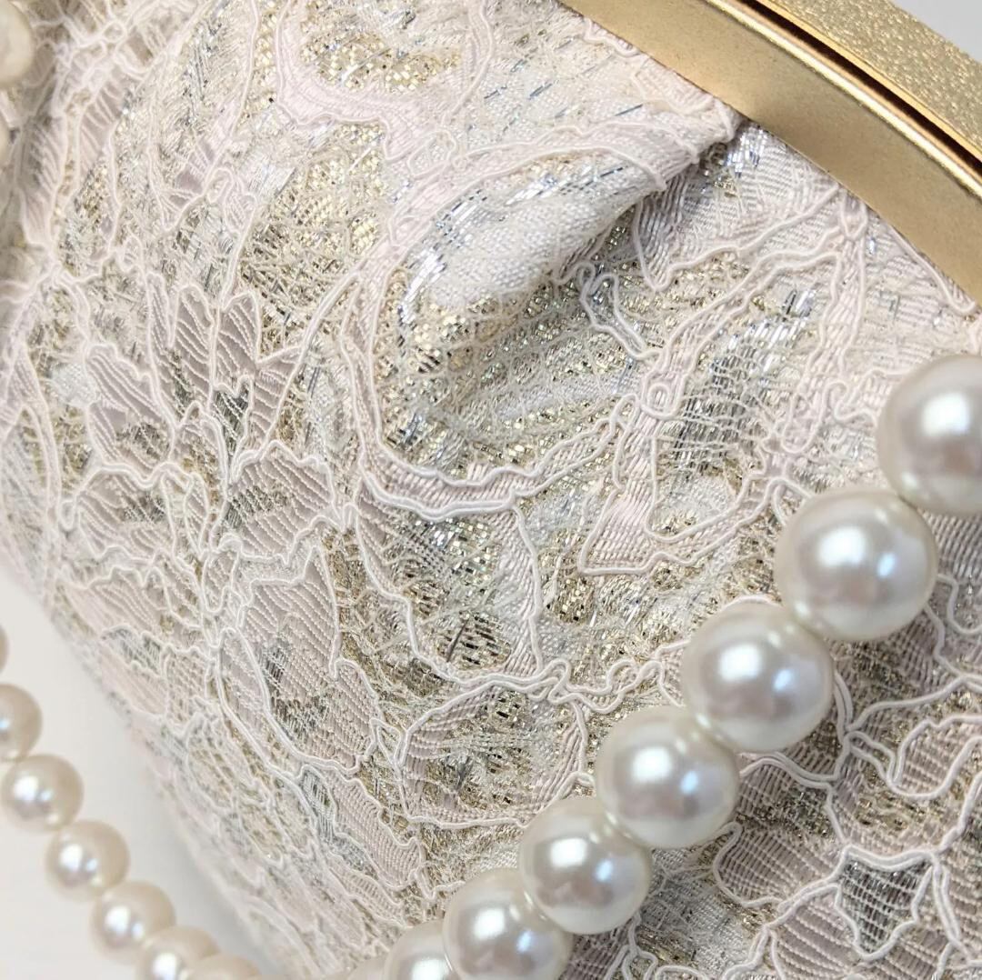 レースを使用した生地が美しい、パールの持ち手も可愛くて