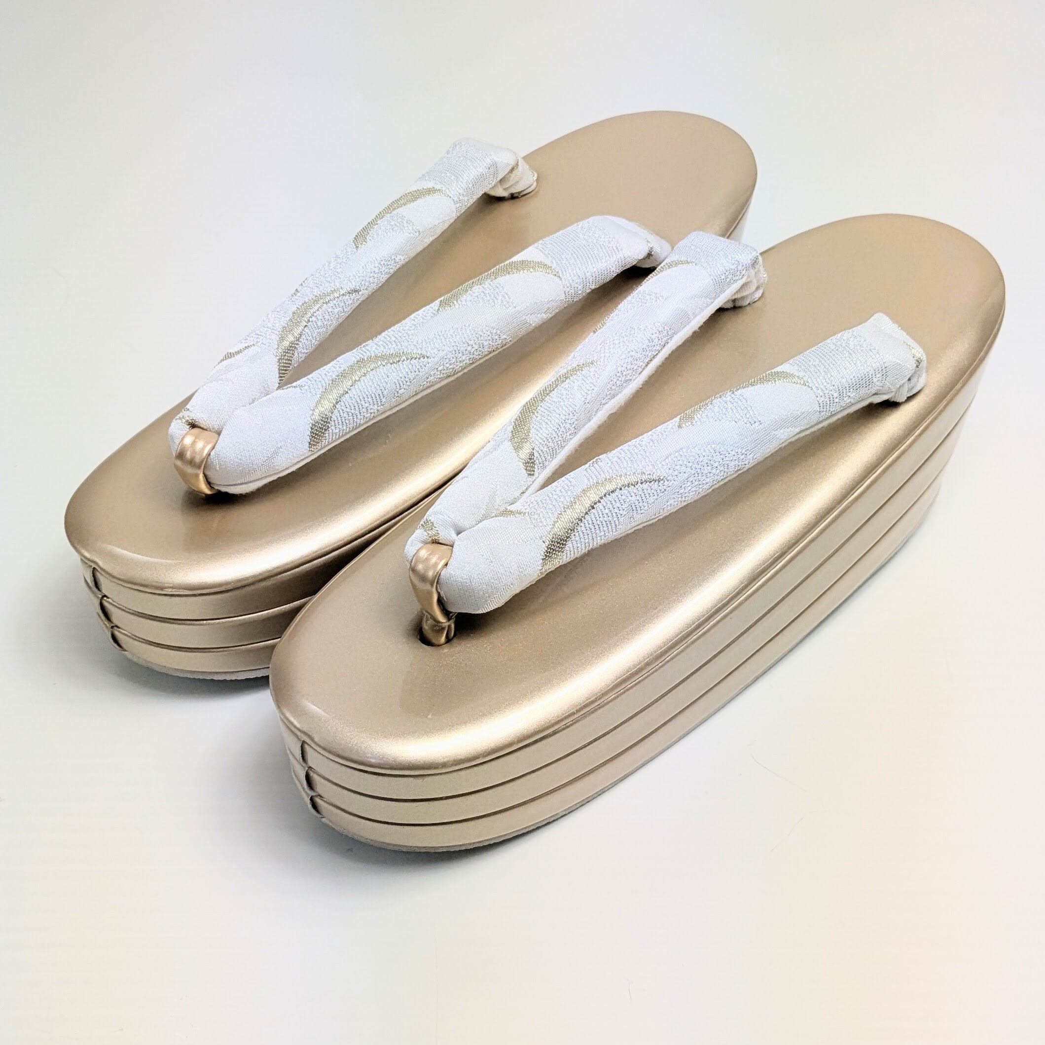 和装 草履バッグセット 帯地 白×金 3枚芯 フリーサイズ k19-14
