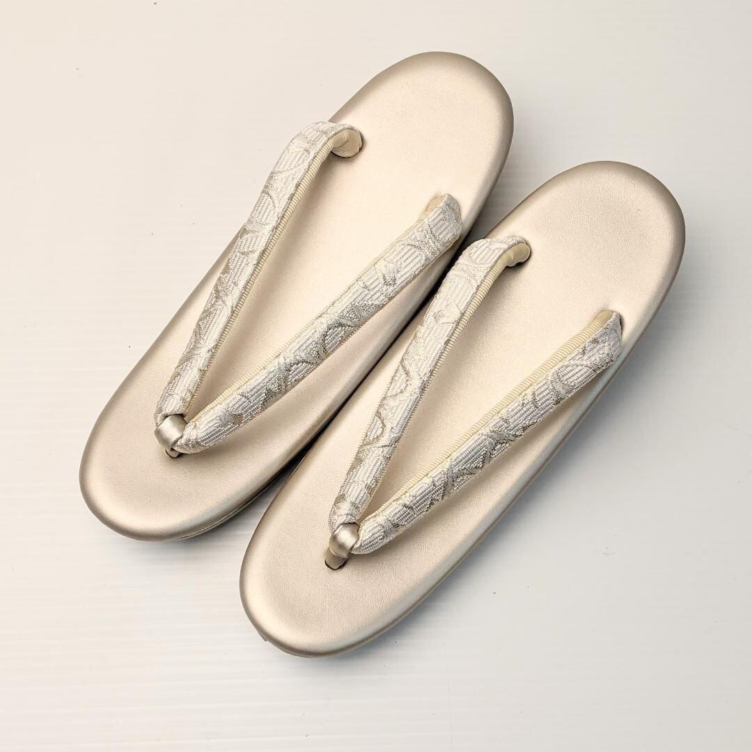 シャンパンゴールド系の上品な草履には、固すぎず柔らかすぎない程よいクッション性があり、長時間履いても疲れにくいです。