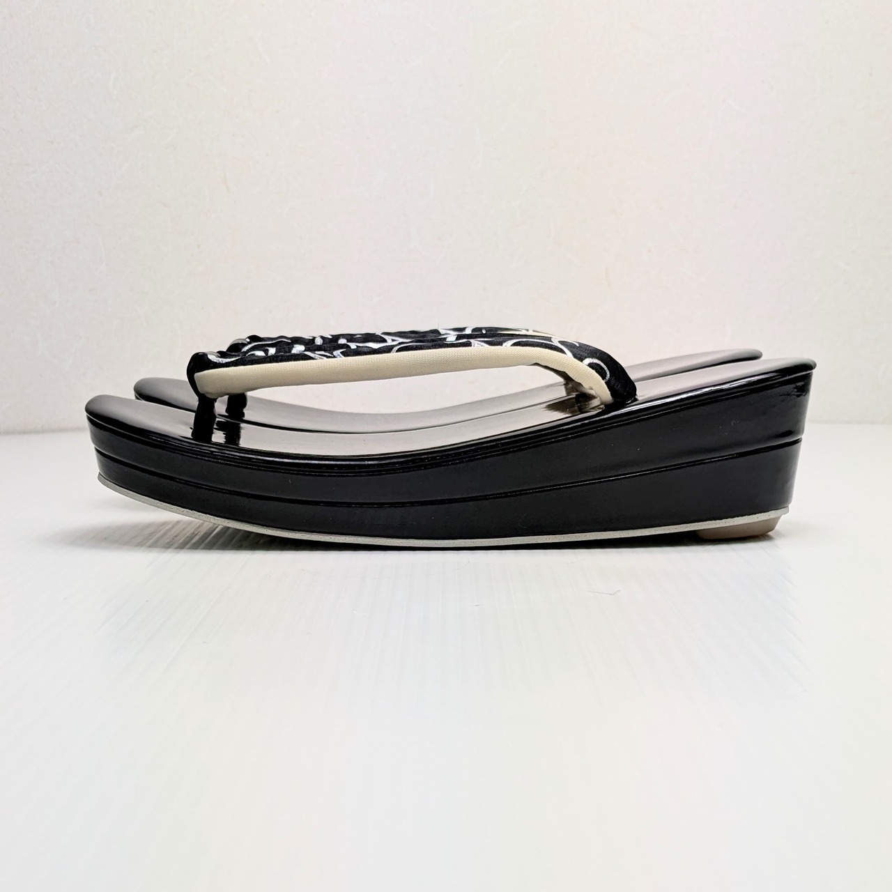 草履バッグセット 帯地 銀彩 唐草 フリーサイズ ブラック×シルバー u109