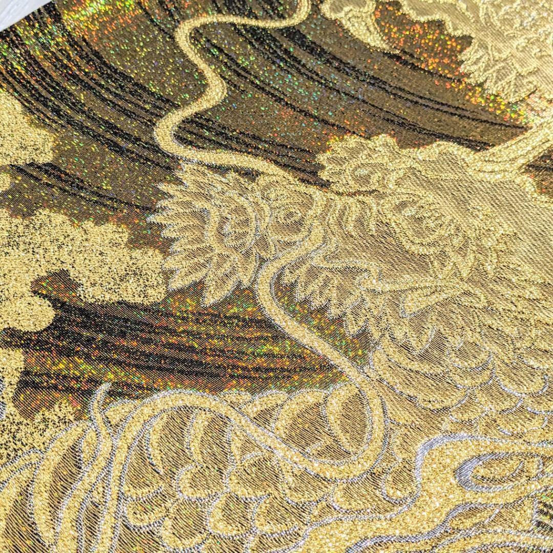 金の織りに、迫力ある大きな龍が豪華な袋帯。