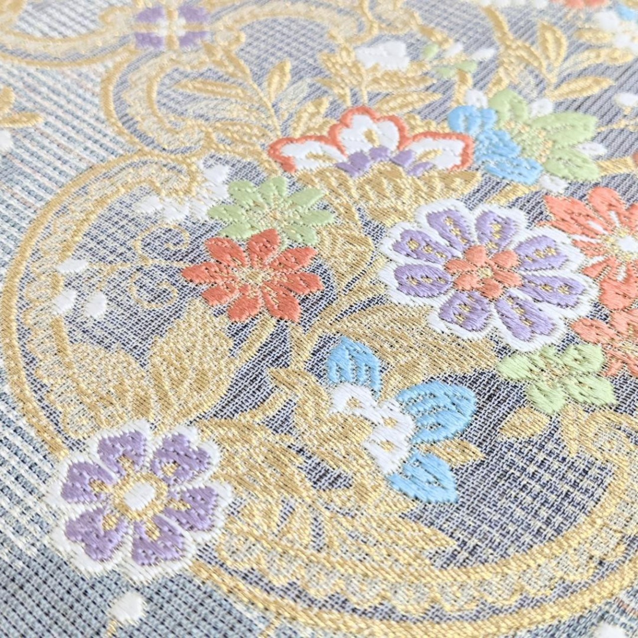 柄の部分に綺麗な色の糸が複数使われていて、着物の色を問わず合わせて頂けます。