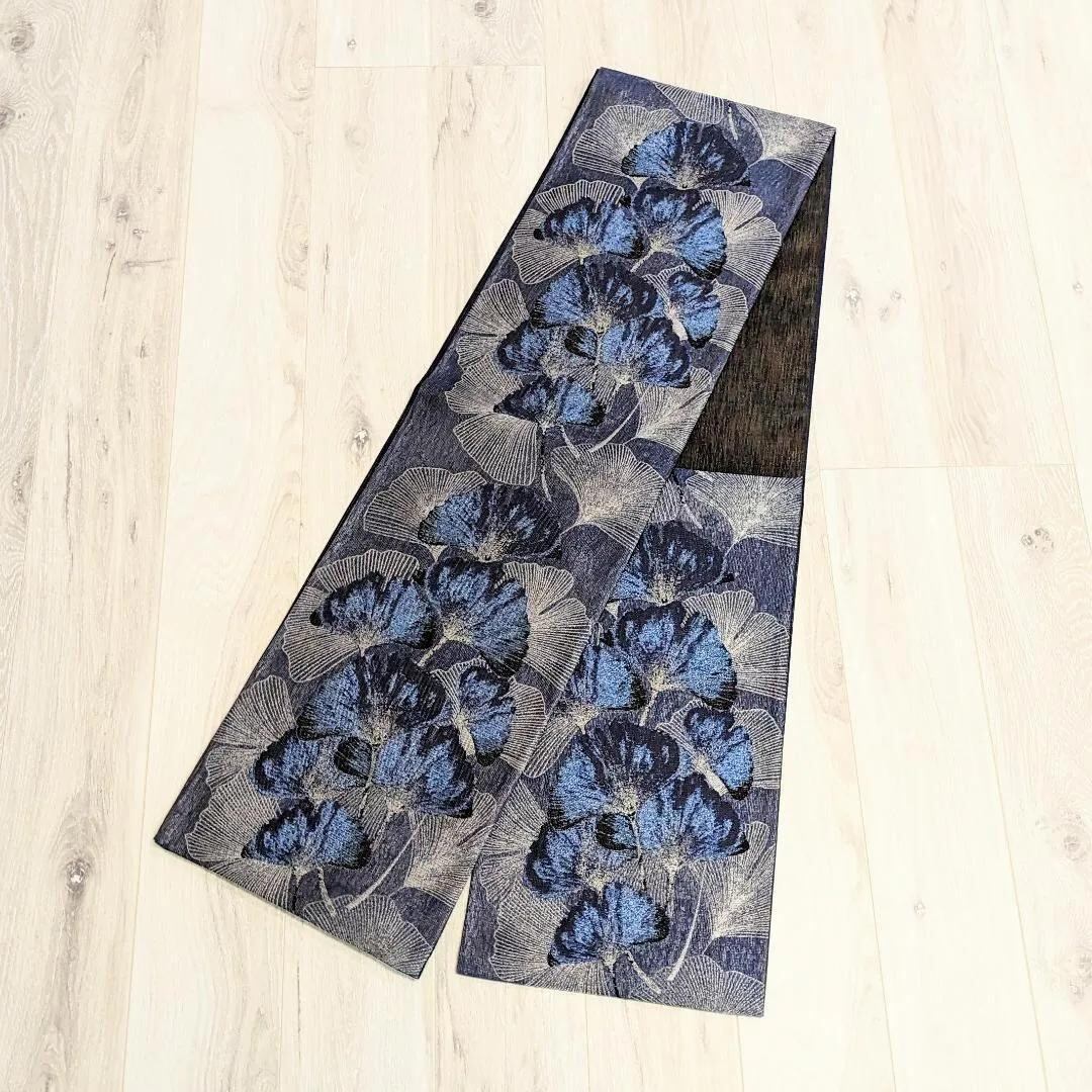 紺地にイチョウ、珍しいデザインの袋帯です。