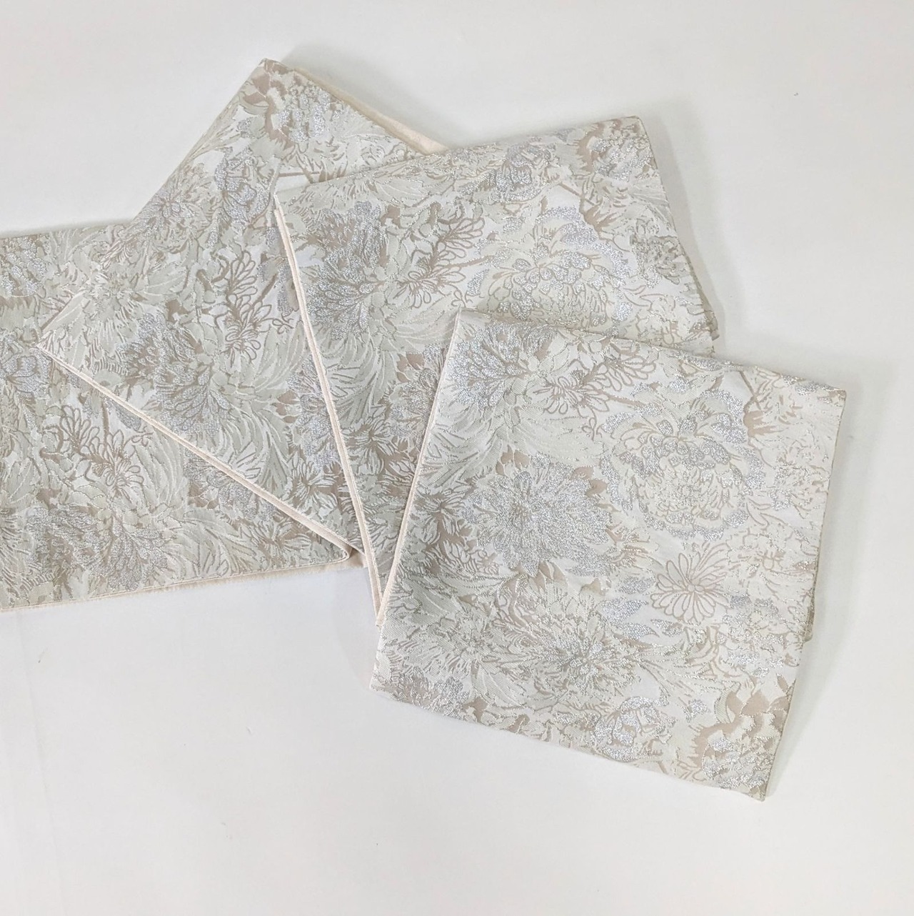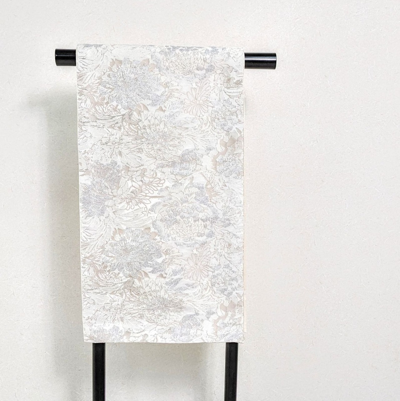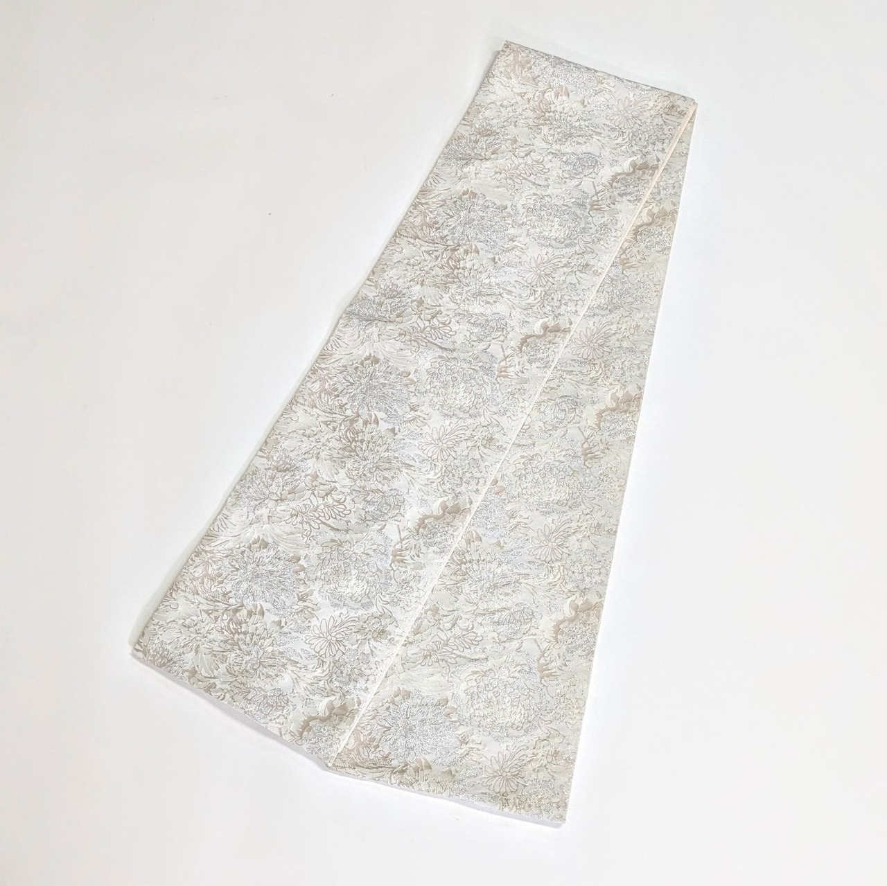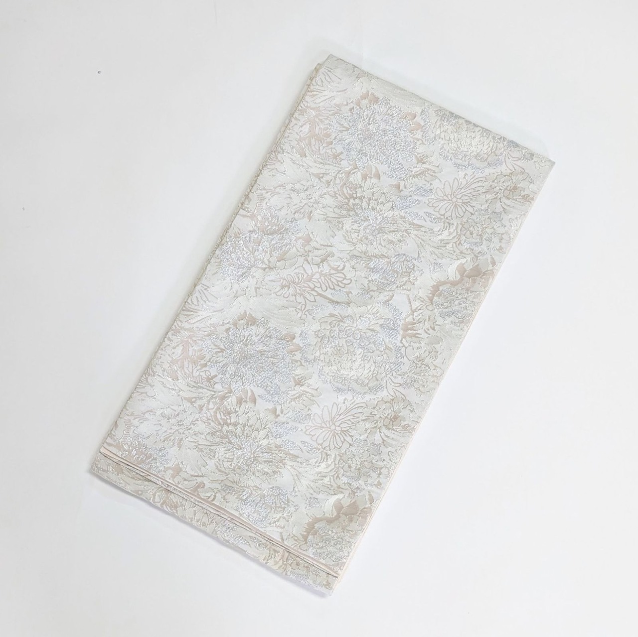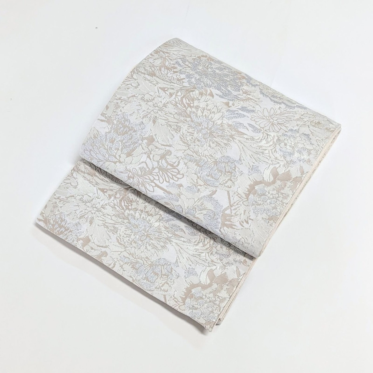 【新品・仕立て上がり】袋帯 白 ホワイト 銀 全通 ポリエステル 菊 kb13